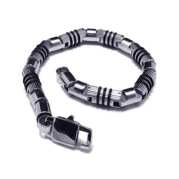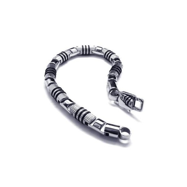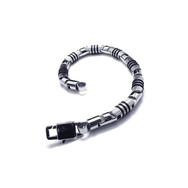 Men's Silver Black 316L Pure Titanium Bracelet Bangle 08109